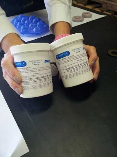2. Tomar 1 parte del molde compuesto etiquetado parte A y una parte del molde compuesto etiquetado parte B, luego mezcle usando sus manos