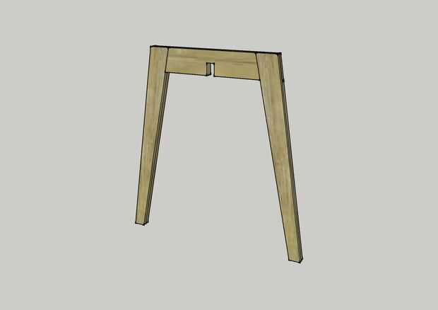 Cada pierna y el carril es hecho por dos placas de laminado, que forman las juntas de regazo medio un pedazo de pastel.