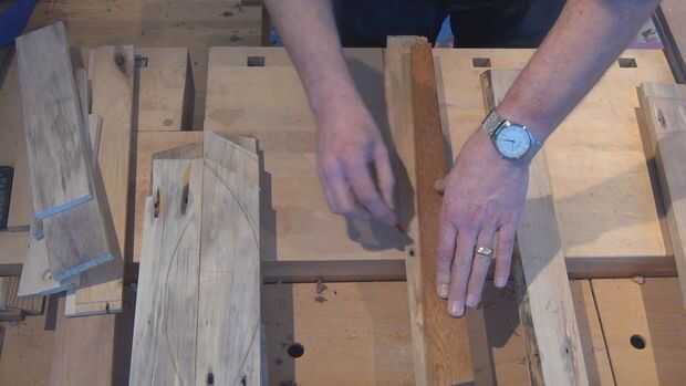 La forma de la pierna se copia a las juntas (estoy usando otra pierna en la foto como un patrón) y todos son aserrados hacia fuera y cepillada a esta forma.
