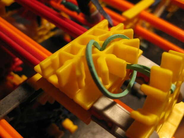 ¡ Hola!El Lanzador de barra de flexión es un nuevo tipo de lanzador de bolas de K'nex. El lanzador hace no utilizar gomas elásticas, en cambio, como su nombre indica, utiliza una barra de flexión para lanzar bolas. Esto elimina la necesidad para la s