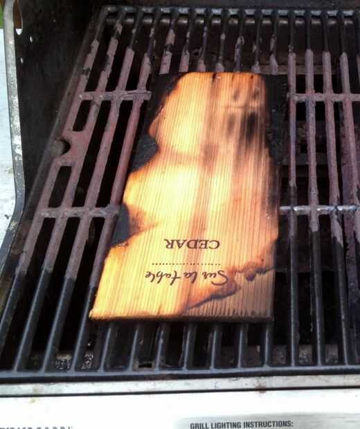 Algunos cedro tablones son más grueso, mejor calidad que otros, si la duela demasiado no está carbonizada o cayendo a pedazos, hace una gran presentación para el salmón. Deja que se enfríe mientras el salmón descansa, luego vuelva a colocar el salmón y servir.