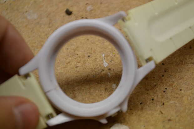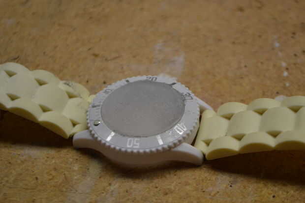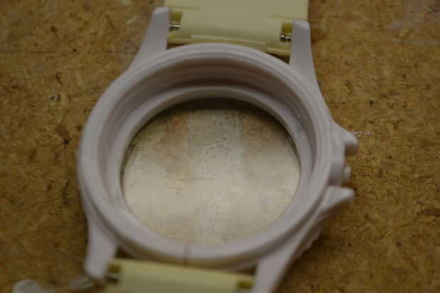 El vidrio del reloj debe sólo saltar y ahora quieres arena por lo que se vuelve más opaco después es arena pop hacia atrás en el reloj.