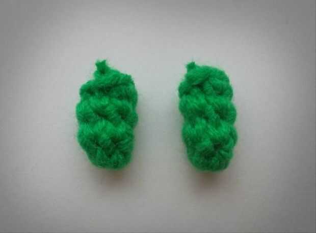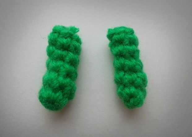 Fije apagado. Deja una cola larga para coser. Para coser los detalles al cuerpo.