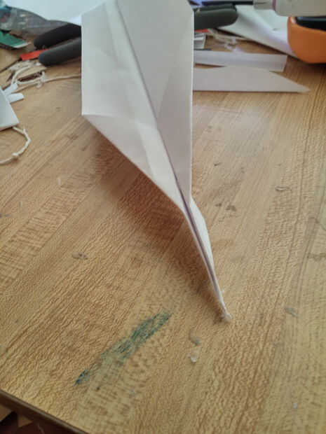 Se trata de un avión de mi propio diseño que es una variante del plano de papel estándar con las alas de la parte inferior. Esto es muy fácil de hacer y se desliza muy bien.