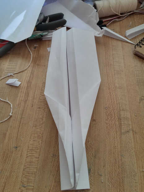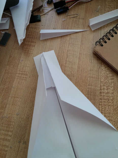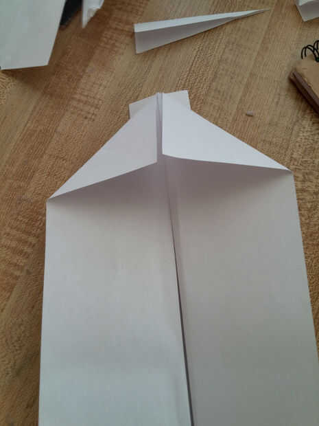 Esto es casi como hacer un avión normal pero con un pequeño toque. en primer lugar, doblar en el medio como de costumbre. Entonces aquí viene el giro. En vez de doblar las esquinas, sobre un centímetro desde el pliegue medio, doblar los dos lados en sí. Luego doblarlas hacia atrás en la línea media. Te sugiero usar pegamento. Debería verse como en la figura 3. Luego doblar los dos trozos grandes abajo otra vez y hacer un avión de papel el camino normal, doblando las esquinas, plegable nuevo, plegable juntos, luego doblar las alas.