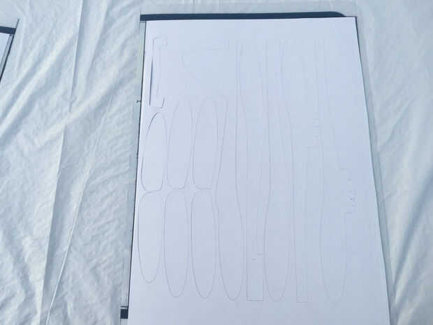 • Identificar las piezas. Tampoco debe etiquetarse con el número (en un área donde se solapan así que no es visible al terminar) o agrandar e imprima el PDF original y coloque las piezas sobre el contorno correspondiente.
