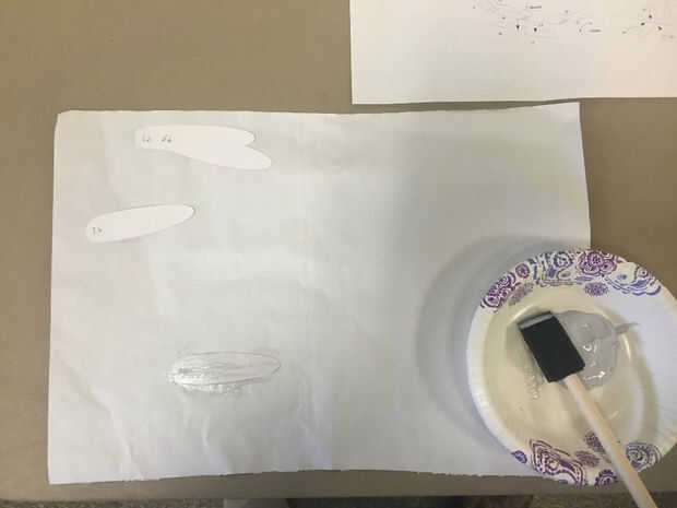 • Coloque el trozo de papel pergamino entre cola apoyo ala apoyo fichas y así no se pegan.