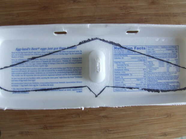 Corte el patrón hacia fuera y traza en el interior de la caja de cartón con un marcador. Con cuidado corte la vela con un cuchillo.