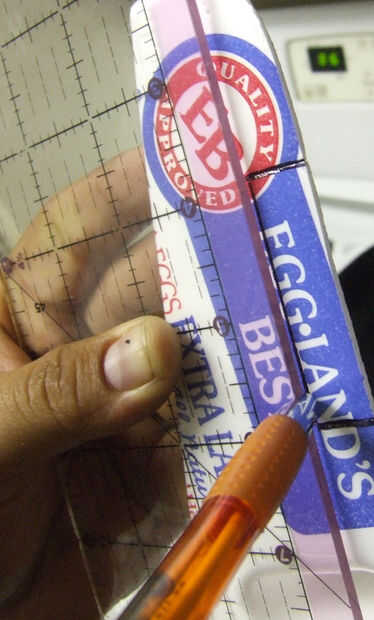 Una vez que se hacen los cortes, se alinean los puntos interiores y marcar líneas con un lápiz y regla para hacer las aletas.