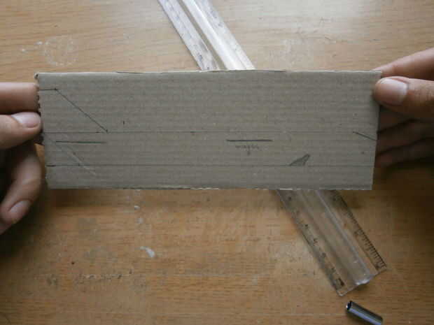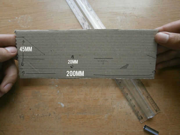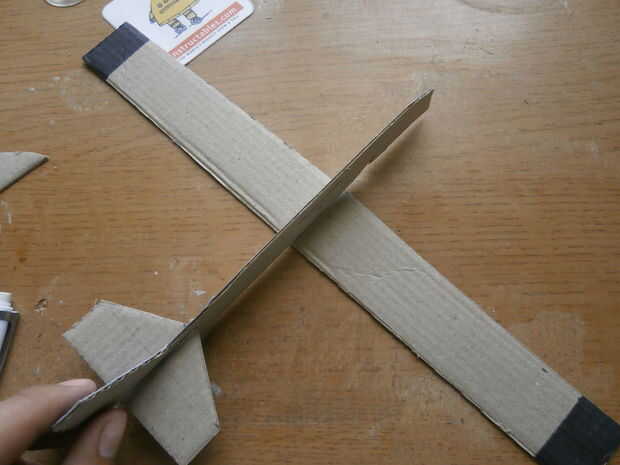 Tomar la pluma / ruller y mecánica lápiz dibujan el cuerpo, las alas y el estabilizador de H (usted puede conseguir los tamaños de las fotos arriba). El ala principal es 300mm de largo, 35mm de ancho en el centro y 30mm de ancho en ambos extremos.