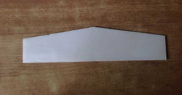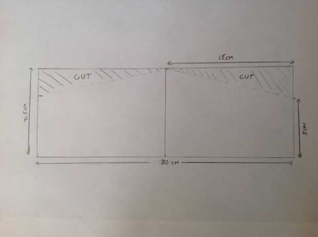 -cortar un rectángulo de 30cm de longitud y respiración 7,5 cm -Marque una línea de centro en 15cm -ahora marque 5 cm a ambos lados de 7,5 cm. -Únete a la línea de centro desde la parte superior hasta la marca 5cm -corte de las líneas diagonales