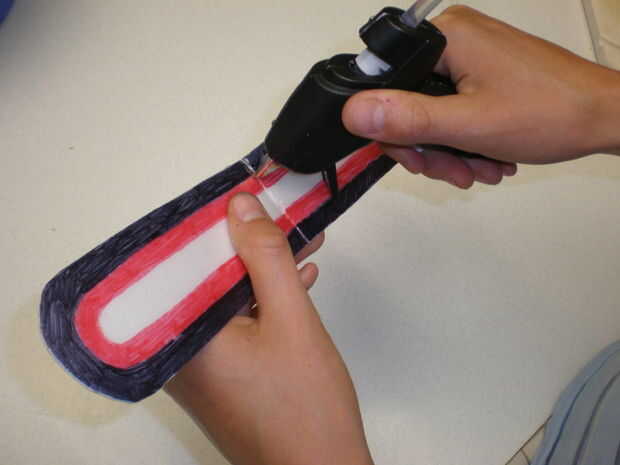 2. para el montaje de la cola, colocar una gota del pegamento, aproximadamente el centro del estabilizador horizontal. Pegar el estabilizador vertical sobre ella y tratar de mantener perpendicular uno al otro hasta que el pegamento se seque.