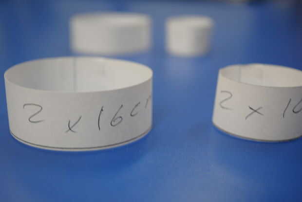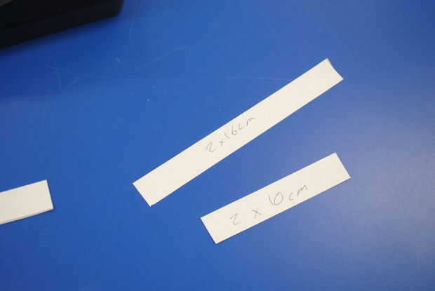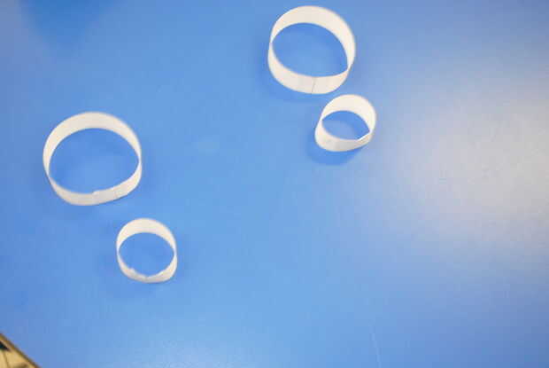 Necesitamos dos bucles de papel. Uno es de 16 x 2 cm el otro es 10 x 2 cm.