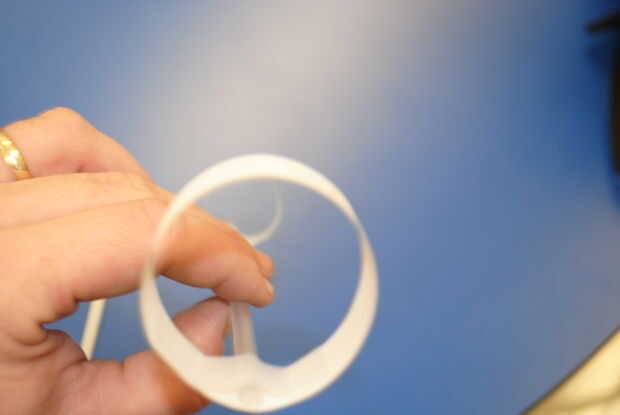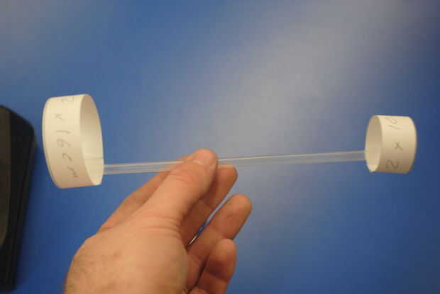 Una vez que tengas los dos bucles entonces puede sujetar cada lazo a extremos opuestos de la paja con cinta adhesiva (a ser consciente de cuánto use).