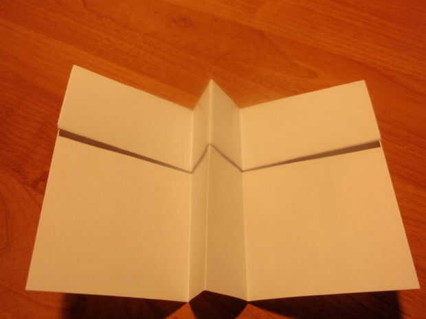 Para empezar, uno de los extremos cortos pliegan cerca de 4 centímetros. Alimentos en y sobre sí mismo, hasta que quede solamente unos 4 o 5 pulgadas de largo totales. Entonces, voltee el papel por la parte gruesa es de usted y frente a la tierra. Luego doblar por la mitad. Después de eso, pliegue las alas hacia abajo. Deben ser aproximadamente una pulgada de la tapa de centro.