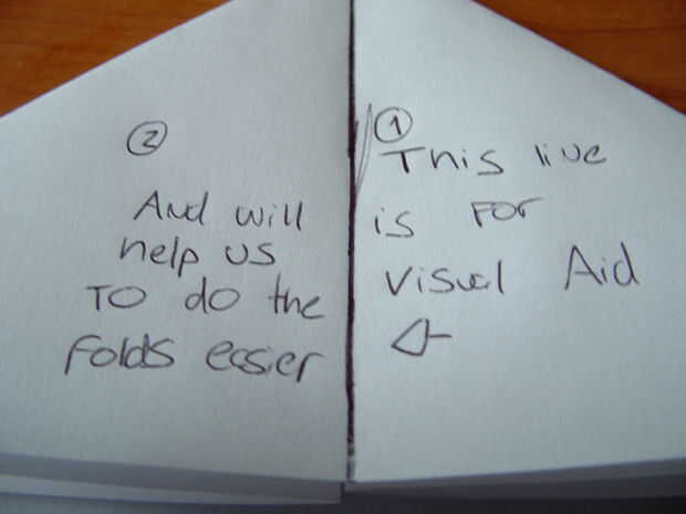 aprender a construir un planeador de papel larga distancia que irá más lejos que cualquier otro avión que has hecho.Paso 1: Paso 1 - Prefolding Pre-doble a lo largo de las líneas. El blanco es el lado primario.Paso 2: Paso 2 - punta Doble en dos bord