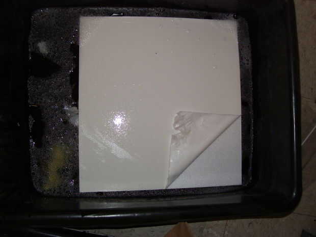 empapar la base de la espuma en agua con un poco de jabón durante aproximadamente 2 horas. Usted puede entonces fácilmente Pele el papel frente a, desea utilizar el cartón pluma de 3mm si tengo pero más gruesos deben trabajar.
