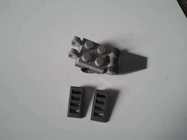 4. Fije el ala sobre la placa de 1 x 2 con manija (3.18) en el cuerpo principal como en la imagen