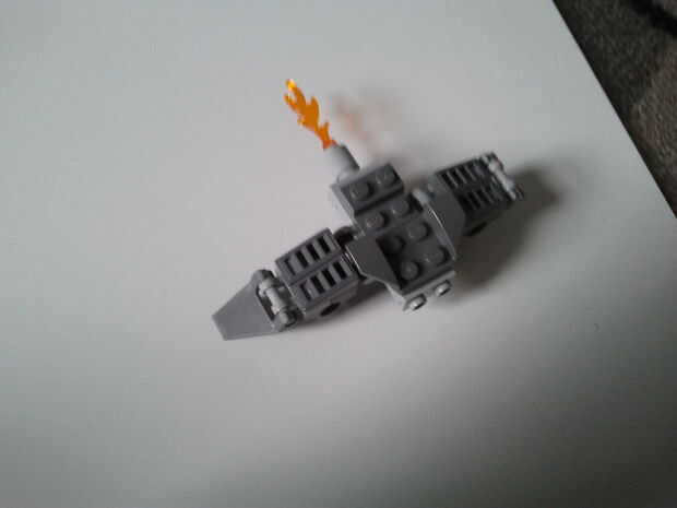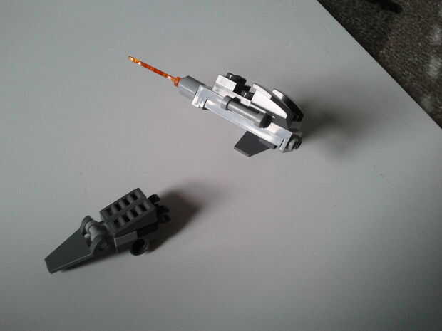 4. Fije el ala sobre la placa de 1 x 2 con manija (3.18) en el cuerpo principal como en la imagen