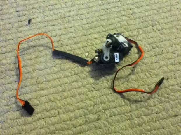 -dos servos con brazos de servo, en cualquier tienda de hobby o th