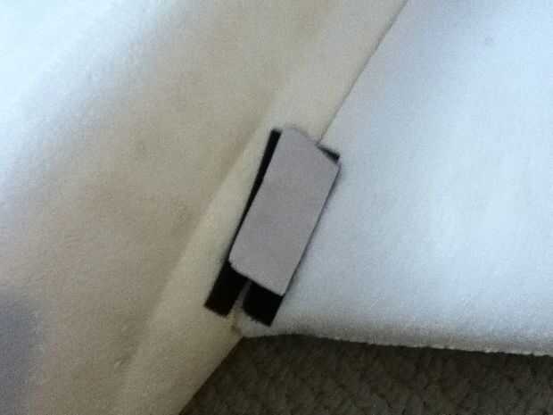 Tome un pedazo largo de 2 pulgadas de velcro suave y córtelo longitudinalmente en el centro. Ahora puede colocar las dos piezas a lo largo de la parte delantera del ala, una sola pieza en el fuselaje y uno a la derecha del ala junto a él. Cuando es tiempo de volar se coloque un trozo de velcro para unir el fuselaje y el ala del gancho. Repita en el otro lado. La colocación de la cinta de velcro es para que las alas no se desprenderá si el avión es lanzado hacia adelante, pero se expulsión si el plano va la nariz en el suelo.