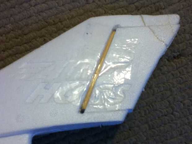 Corte un pedazo de pincho de barbacoa sólo el tiempo suficiente para caber dentro de la abertura en el estabilizador trasero y cinta en firmemente. Ahora puede repetir los pasos utilizados en la instalación del ascensor. Usted debe dejarse con un timón que puede mover izquierda y derecha sin obstrucción.