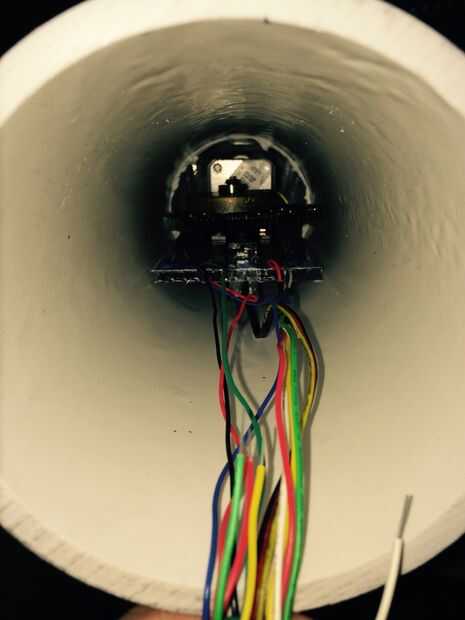 Como ven en las fotos y mencionado antes, enviamos a todos los cables de los tres motores a la parte posterior de la vela donde se se une a la electrónica (Arduino, protoboard y batería).