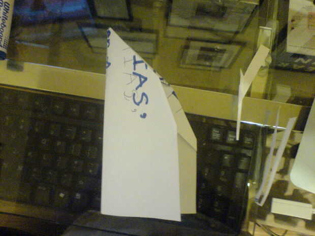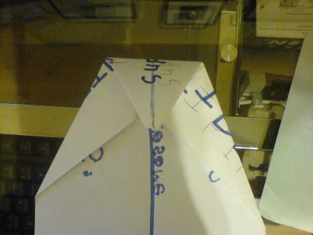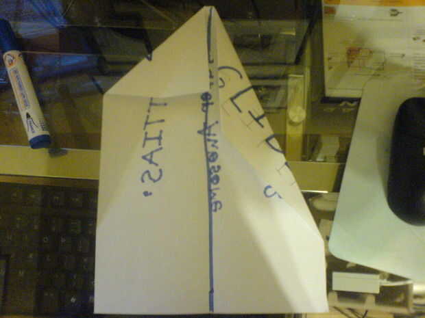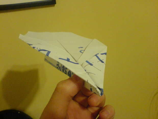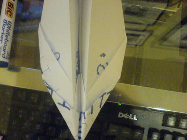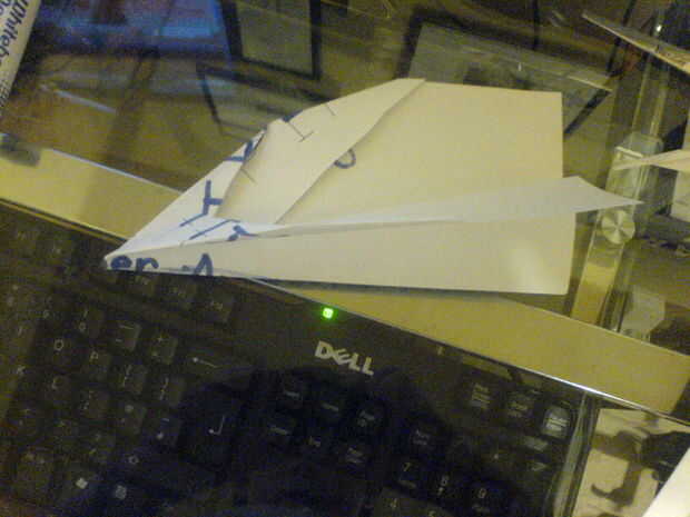 Este planenearly ganó paperplane competición de más de 50 personas. voló a la parte posterior del gimnasio (un buen 20 metros) muy divertido