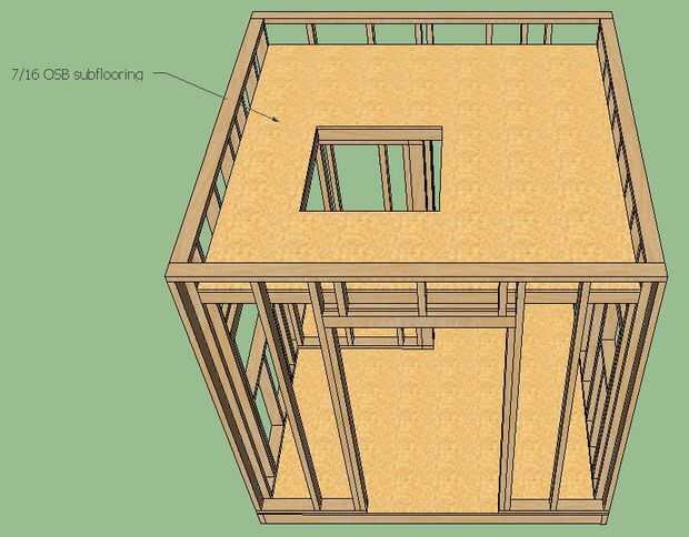 La envoltura de la planta loft con contrapiso OSB de 7/16 o materiales de contrapiso adecuado.