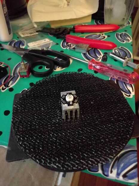 - Coloque el disipador de calor en el centro donde se hizo un recorte de espacio en el revestimiento de la repisa.