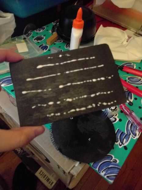 - Coloque el círculo de papel recortado en la parte superior del tablero de madera que es el diámetro de la abertura del recipiente plástico cúpula.