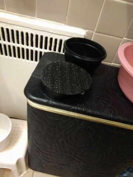 - Coloque el tablero de madera encima del tazón de fuente plástico del caso.