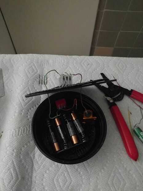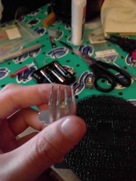 - Coloque el estante forro cortado por dentro. La batería y el resistor se colocará en este tazón de fuente.