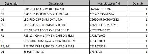 Verás la lista de materiales aquí para las piezas usadas. Hemos incluido un LED rojo como un color diferente o un circuito de doble parpadeo del LED.