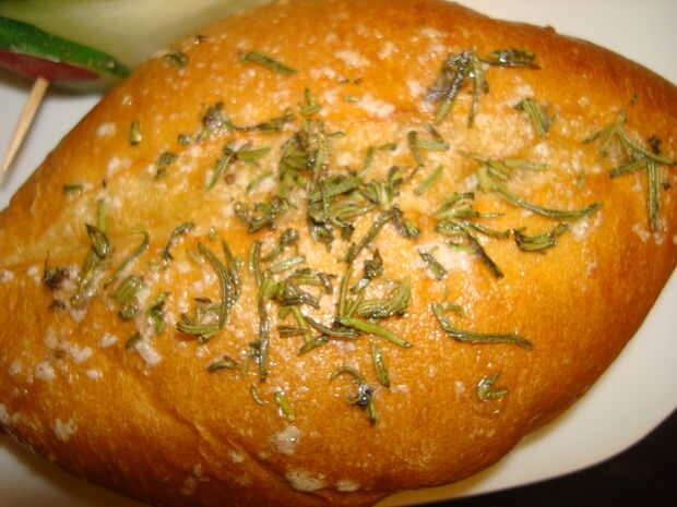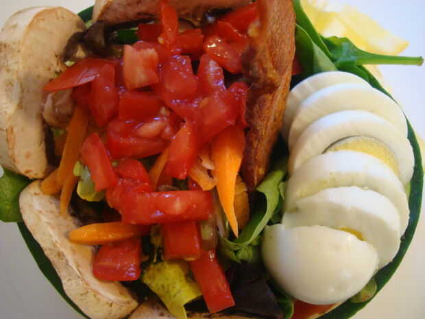 Pepino ensalada de tocino envuelto / aderezo de limón y amargo de masa de pan
