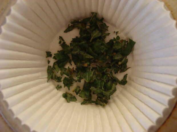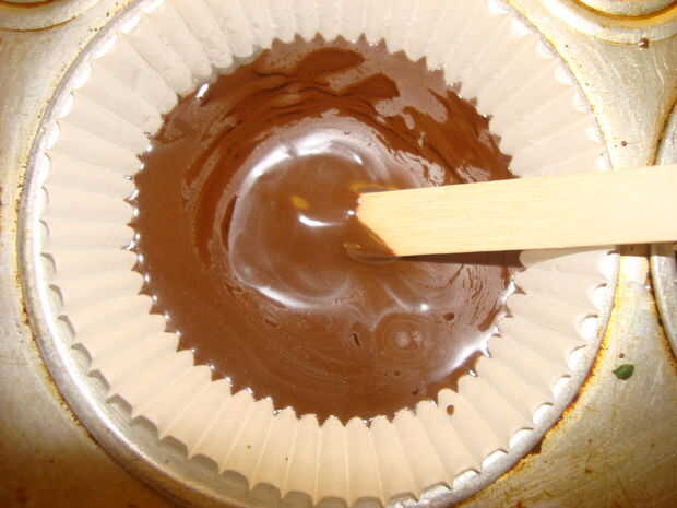 Dados la menta y colocar en la parte inferior de la Magdalena.