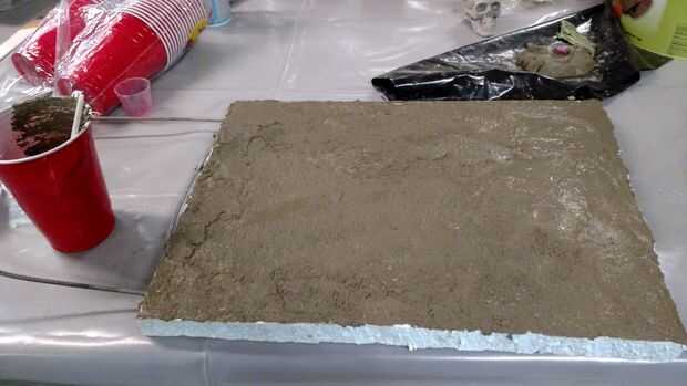 Esta es la cara alisada hacia fuera de la lápida. Usted puede dejar así o decorarlo con nombres de la pintura y tal en él. O dejarlo como está. Luego tomar la pieza de bolsa de basura y ponerla bajo la lápida para empezar cubriendo los lados.