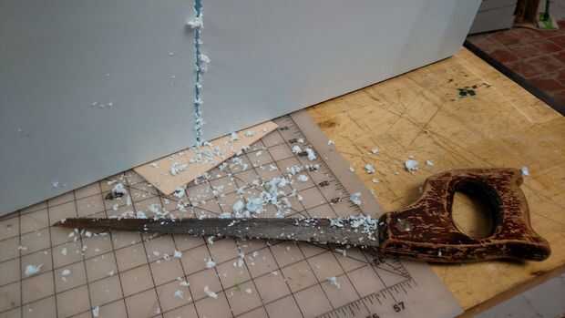 Ver los cachitos azules. Hay muchos de ellos cuando usted corta. Cuando haya terminado corte te va a querer sacarlos tu trozo de espuma para que no llegar en mal Estados en el ShapeCrete.