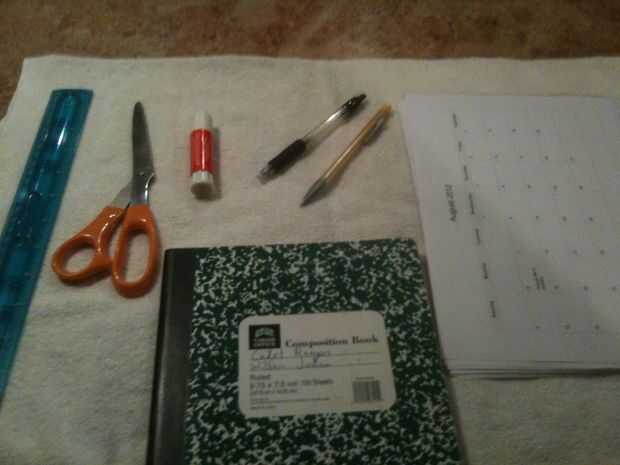 Cuaderno de composición (yo usé una vieja, parcialmente utilizada)