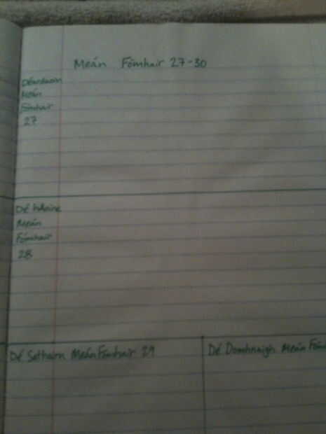 Esto realmente depende de tus preferencias personales. Para este proyecto, enumeré lunes y miércoles en el lado izquierdo del libro y jueves a domingo en el lado derecho.