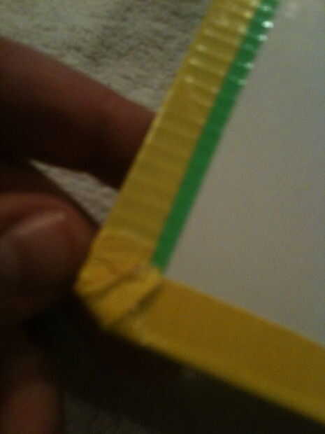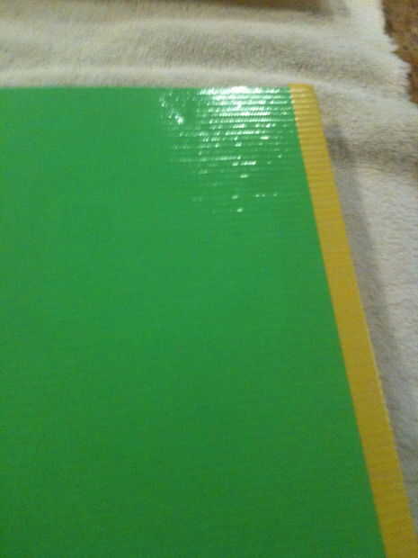 Tomar el color del conducto papel que utilizas para los bordes. Determinar cómo amplia un borde que desee y corte una tira de hoja de conducto dos veces ese ancho. Empezar por bordear los lados verticales en las cubiertas frontales y posterior del libro. Porque quería un borde.5 pulgadas de ancho, yo usa una regla para marcar.5 pulgadas desde el borde hacia la parte inferior como en la parte superior del libro. Línea de la tira de cinta con estas marcas se adhieren y plegar. Remeter los bordes en las esquinas.