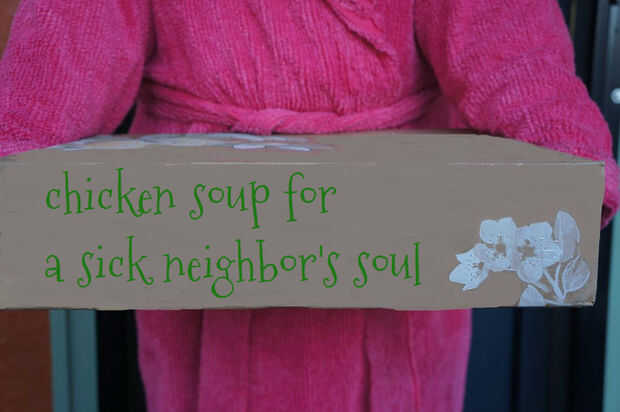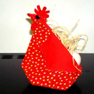Mientras mi vecino y yo estábamos cocinando nuestra maratón stock; su hija detener con un terrible dolor de cabeza y cuello. Mi vecino le dio una taza de caldo, cocinados en el microondas la bolsa de arroz y tenía su mentira en el sofá un rato. En poco tiempo ella se sentía mejor y fue a su casa. Varios días más tarde mi vecino hizo un paquete de cuidado para una de sus amigas y coloca el caldo y frío para aliviar los productos en una cesta tejida de pollo; "que me recordó a un instructivo que publiqué hace unos años" hace un pollo de origami de tela en lugar de papel. Sería una única cesta para este tipo de regalo: gallinita roja
