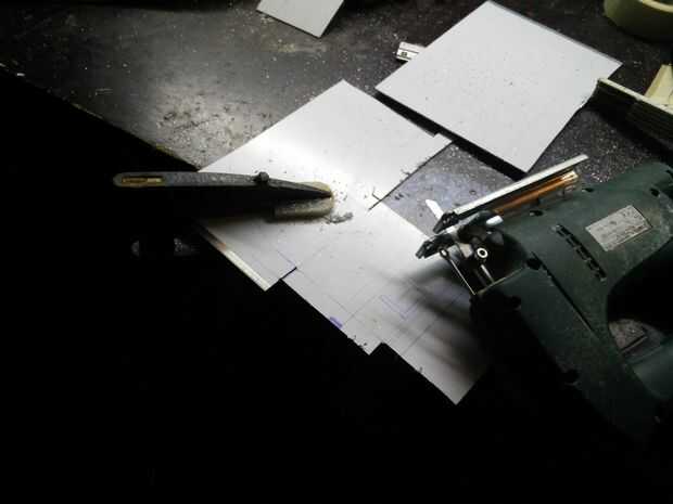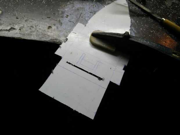 Hice primero la forma necesaria en la cartulina, que hará más fácil editar el aluminio más tarde. Dibujé la forma de la placa de aluminio y cortado con una sierra de calar metal. Podría ser útil para cortar la forma un poco más grandes para corregir errores más tarde.