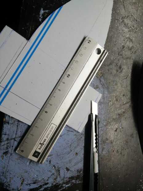 -Agarrar un cúter y una regla y corte en el exterior de la forma que desee para doblar.