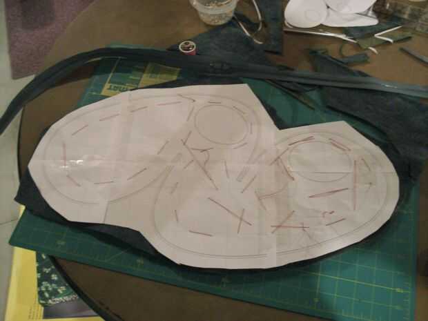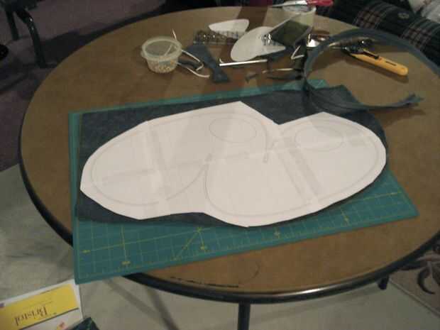 Coloque la primera capa de fieltro derecho hacia abajo sobre una superficie plana. Entonces el otro trozo de fieltro derecho hacia arriba en la parte superior y el patrón en la parte superior. Si el patrón es pequeño (menos de un pie cuadrado) puede simplemente presione hacia abajo o utilice unos alfileres para mantenerlo en su lugar durante el corte. Si el patrón es más grande, usted necesitará Hilvanar las tres capas con el hilo botón contraste (te quitas esto más adelante). Sin embargo, asegúrese de que dejar suficiente espacio para colocar la cremallera (probablemente unos 3/4") todo el camino alrededor del borde. Cortar el patrón en la línea interna y utilice su cortador de rotary cuchillo para cortar los mangos.