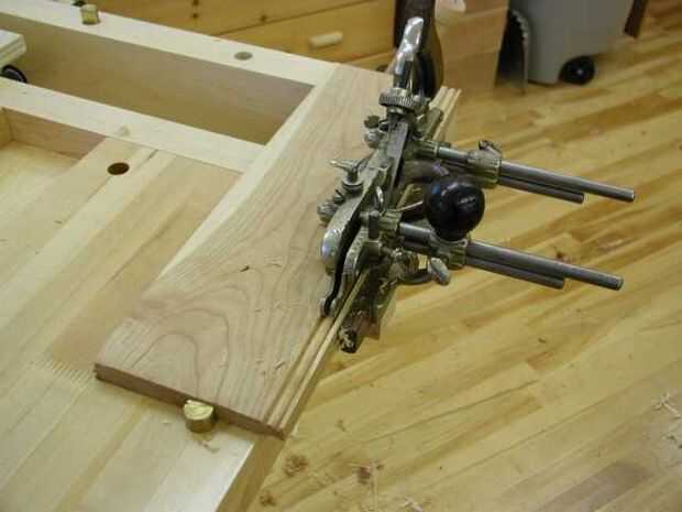 Stanley 45 que se muestra con barras cortas y largas, parte camino a través de un cordón de 3/8 de pulgada en el borde de un tablero.