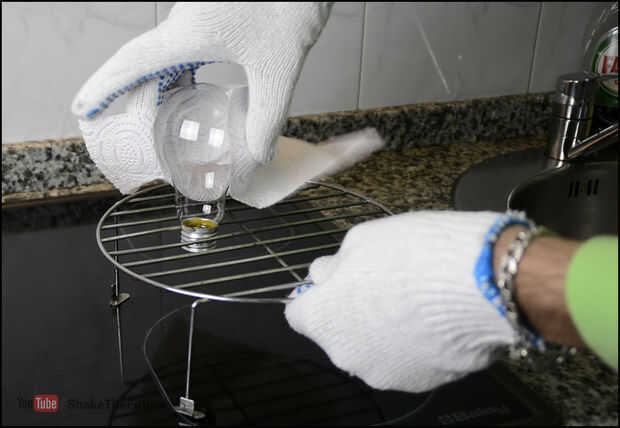 Una vez que la lámpara está caliente, sacar del horno y atasco en algún lugar con la parte inferior hacia arriba.