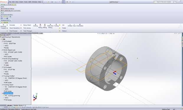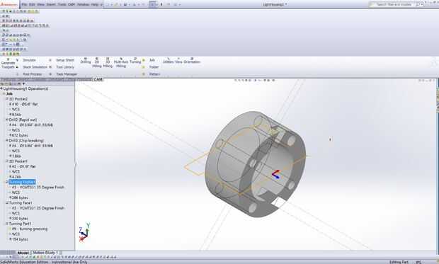 Las operaciones son en su mayoría verticales de fresa con pasos dio vuelta a sus lados, hasta los dos últimos donde usé una herramienta de torno para simplemente limpiar el borde exterior y un escoplo para cortar mi pieza de dimensión, no flip necesaria (como tendría en el molino).