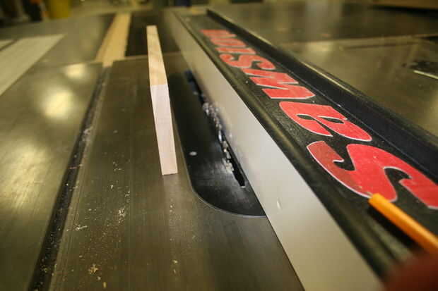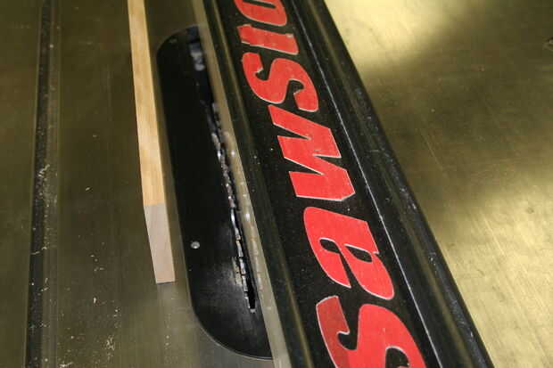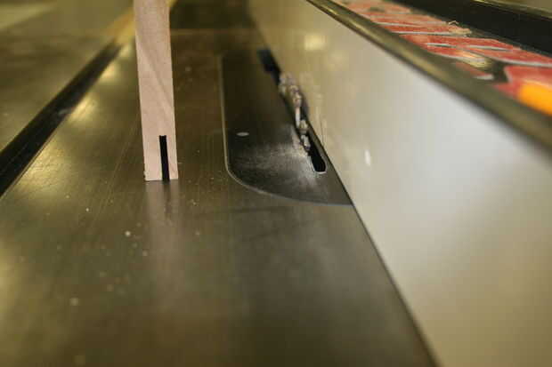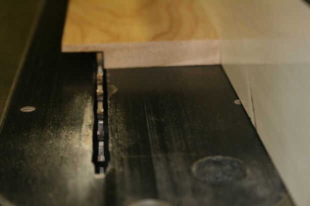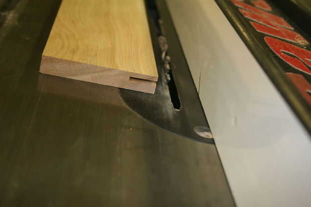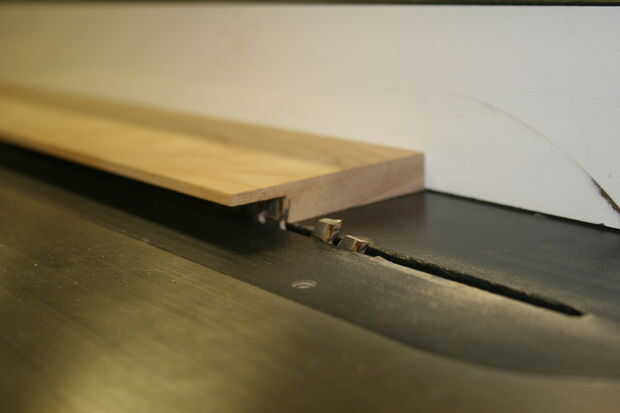 El vidrio tiene que poner en algún lugar; vamos a cortar esto una muesca con la Sierra de mesa. Cuando haya detrimento de la profundidad del corte, necesidad de vidrio y una placa de soporte de ajuste, con las lengüetas mantiene el vidrio en su lugar. Ejecutar la vertical corte 1, levante la hoja hasta aproximadamente 3/4 alto y establecer la valla. Esto va a cambiar con cada fotograma. Ejecutar cada uno de la Junta a través de. Que acaba de hacer un conejo. Baje la hoja y pasar la valla a cortar la salida del resto.