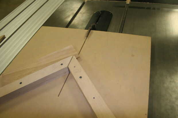 Tomar una de las juntas y contra el riel de la plantilla, pase a través de la sierra. Terminarás con un pedazo de triángulo pequeño. Repita para las otras 3 juntas. Apague la sierra y establecer la parada para el primer lado de la abrazadera. Varilla los opuestos laterales para tener la misma longitud, si no son el igual el marco nunca se acoplarán entre sí perfectamente. Siempre doble comprobaré las longitudes. Sostener la pieza de remolque junto a los demás y sentir si uno en largo. Si es así, re cortada. Repita los pasos para el otro lado del marco.